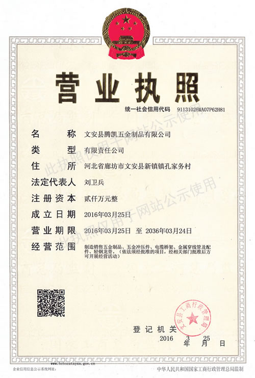 文安縣騰凱五金制品有限公司創(chuàng)建于2006年,是電纜橋架制造廠商,位于河北省文安縣新鎮(zhèn)工業(yè)區(qū),東連京開線106國道,北接津保高速公路,背靠京九大動脈,地處北京、天津、保定三角地帶,交通便捷,通訊發(fā)達。